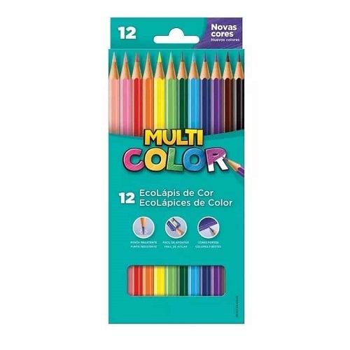 Lápis de cor com 12 cores Multicolor. Lápis ecológico, fabricado com madeira de reflorestameto. Possui cores fortes, é fácil de apontar, super resistente. Para uso escolar. Material/Composição: MADEIRA DE REFLORESTAMENTO E MINAS DE RESINA